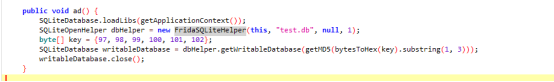 需求2,“获取数据库的初始密码”,数据库因为要和app内容进行交互所以通常是直接写在代码中的,使用jadx进行反编译,分析代码获取到密码后,使用adb将数据库导出再使用分析出的密码进行验证即可。